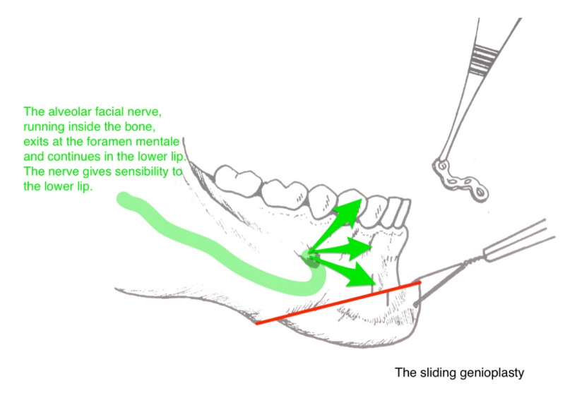Na de ingreep kan er een tijdelijke gevoelsverandering optreden in de onderlip, zoals dit ook kan voorkomen bij ingrepen van de onderkaak (BSSO). In de meeste gevallen verdwijnt dit na verloop van tijd.