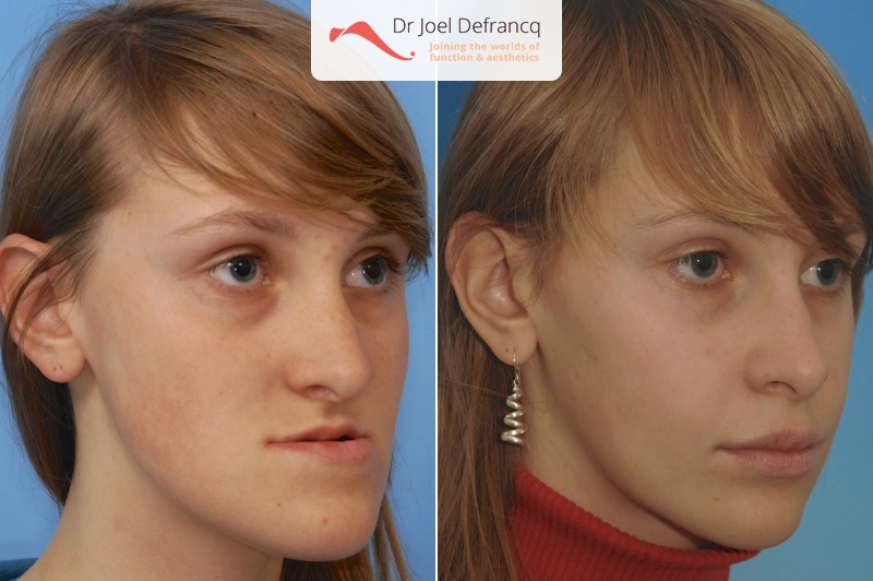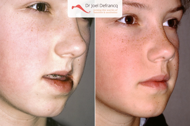 In beide gevallen is de esthetiek onze grote zorg. Beide aandoeningen zijn klinisch onbetwistbaar aan elkaar gelinkt en vertonen min of meer dezelfde kenmerken. Door een ingezonken uitzicht van de bovenkaak of door een uitstekende kin of onderkaak, kan een persoon zich ongemakkelijk voelen. Het kan hem of haar zelfs depressief maken, maar dit is niet noodzakelijk het geval. De beet zelf is trouwens ook ongunstig, namelijk Klasse III of randbeet. Dit beïnvloedt de glimlach en bij de meeste mensen ook hun gevoel van welzijn en zelfbeeld.