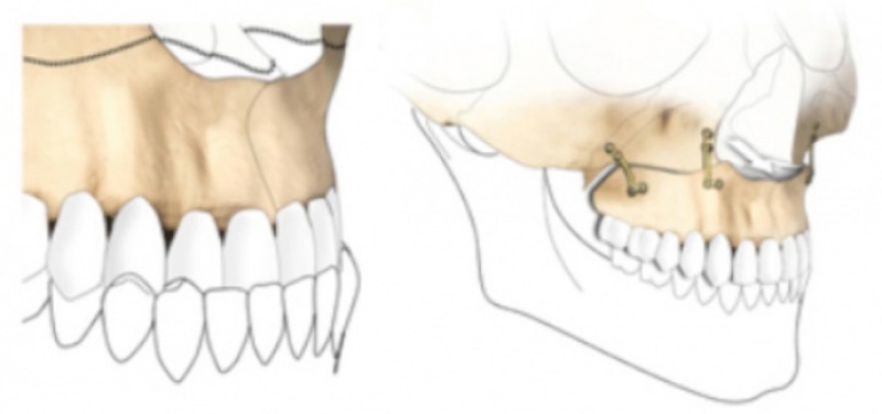 Corrigerende heelkunde voeren we meestal uit op beide kaakhelften, en niet op een enkele kaak. Dit is niet louter voor esthetische redenen, maar ook uit preventieve overweging tegen slaapapneu op latere leeftijd. De heelkundige ingreep beoogt een correcte repositie van de bovenkaak door middel van een Le Fort I voorwaartse verplaatsing, of een Le Fort I voorwaartse verplaatsing en verticale extrusie (naar beneden kanteling) (met bot interpositie). De onderkaak wordt behandeld met een achterwaartse verplaatsing en vaak ook een genioplastie (meestal voorwaartse verplaatsing van de kin). De transversale dimensie van de bovenkaak moet vaak aangepast worden met behulp van een botverankerde expander (smile distractor®), of in de onderkaak met behulp van een op tanden gedragen apparaat.