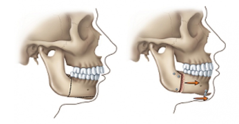 Sommige orthodontisten verkiezen om de patiënt niet door te verwijzen naar een maxillofaciale chirurg om een voorwaartse verplaatsing van de onderkaak te laten uitvoeren. En dus kiezen zij ervoor om twee voorkiezen te trekken in de bovenkaak en de voortanden met behulp van orthodontie naar binnen te corrigeren. Dit creëert een vlak gezicht en compromitteert vrijwel altijd de esthetische uitkomst van het globale gezicht.
