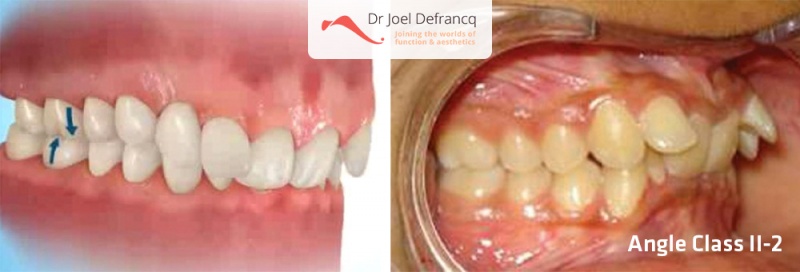Behandeling van Klasse II 2: orthodontie, de bovenboog dient gebracht te worden van een Klasse II 2 naar een Klasse II 1. Alleen daarna kan men een orthognatische ingreep (BSSO) uitvoeren om de occlusie om te vormen naar een normale Klasse I.