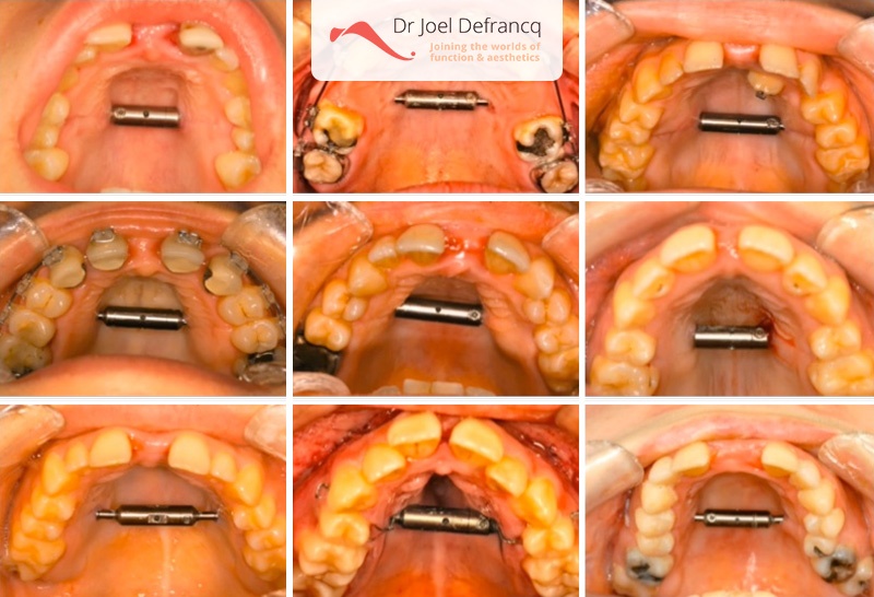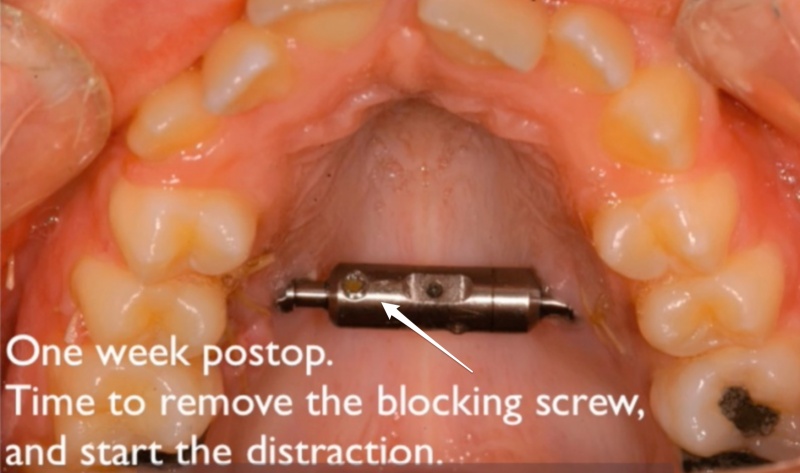 Historische noot: Het is interessant op te merken dat de transversale deficiëntie van de bovenkaak (en onderkaak) de laatste dimensie was die eigen moest gemaakt worden in de orthognatische chirurgie. In de jaren ’50 en ’60 was het onder controle krijgen van de voor-achterwaartse dimensie de uitdaging (met de komst van de bilaterale sagittale split van de onderkaak), gevolgd in de jaren ’70 en ’80 door de uitdaging om de verticale dimensie onder controle te krijgen (met de komst van de Le Fort I osteotomie in de bovenkaak). In de jaren ’90 heeft het werk van de Russische chirurg Ilizarov de aandacht getrokken van het Westen. Dit leidde tot de grondlegging van het principe van osteodistractie, wat inhield dat langzame doch onafgebroken verlengingsprocedures nodig waren. Het principe werd dan uitgebreid naar de beenderen van het gezicht en toegepast in de bovenkaak (chirurgisch geassisteerde palatale expansie), alsook in de onderkaak. Er werden miniatuurmodules ontwikkeld die gemakkelijk en hygiënisch konden worden toegepast. De smile distractor (Titamed® ) is er het meest gekende voorbeeld van.