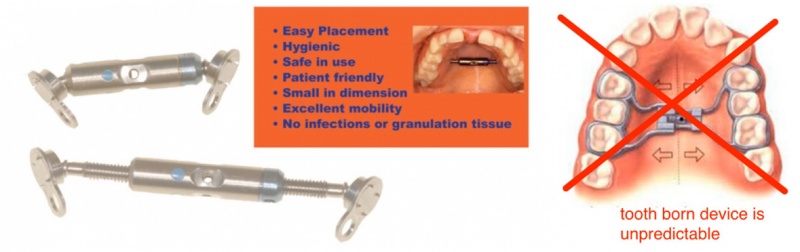 Noot: Wereldwijd gebruiken veel orthodontisten nog altijd de ‘hyrax’: een apparaat dat op de boventanden gefixeerd wordt. Alle krachten worden dan ook rechtstreeks op de tanden uitgeoefend, en slechts onrechtstreeks op het bot. Daarom veroorzaakt dit toestel vaak opensperring van de tanden. Deze opensperring van de meer achteraan gelegen tanden is heel hinderlijk, aangezien het zorgt voor een onvoorspelbaar eindresultaat en recidief nooit ver weg is.